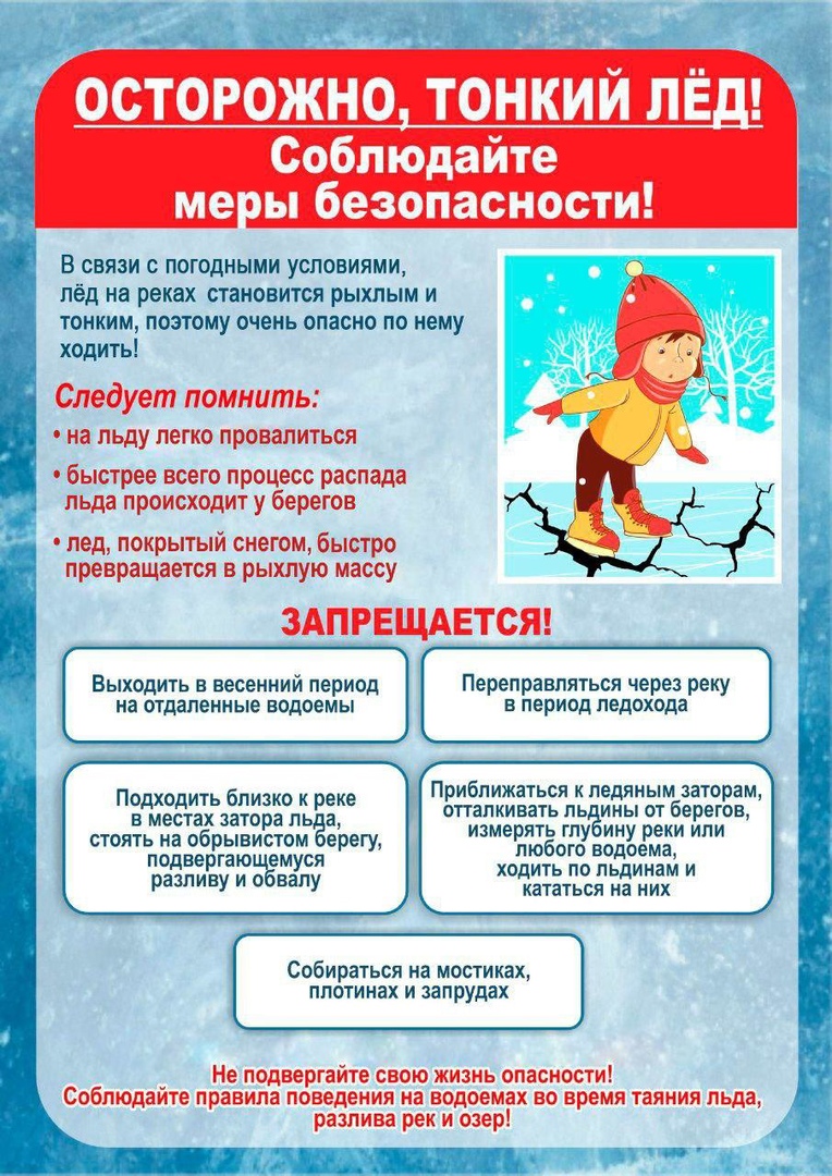 С наступлением весны и началом таяния льда повышается риск чрезвычайных ситуаций на водоемах. Ежегодно тонкий лед становится причиной гибели людей. Многие забывают, что выход на лед водоема всегда опасен! Как правило, среди погибших чаще всего оказываются дети и рыбаки. Избежать происшествий можно, если соблюдать правила безопасности